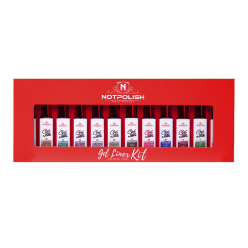 With a little imagination, the possibilities are endless! NotPolish Gel Liner Glitter Kit is 12 shades of highly pigmented colors with a dash of sparkle! The applicator brush makes for an effortless look. Within 30 seconds your gel liner cures. So easy to use- these shades can create graphic looks or add a quick pop of color. The thin brush can complete all of your French manicures. The brush is simple to use: gliding top to bottom and left to right for all your designs. These pencil like liners are a must in your collection!